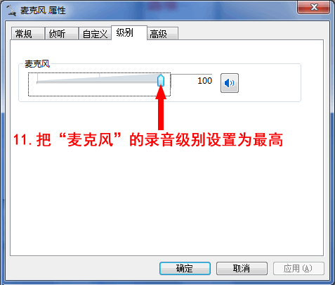 第九步:把“麦克风”的录音级别调至最高。(见图8);